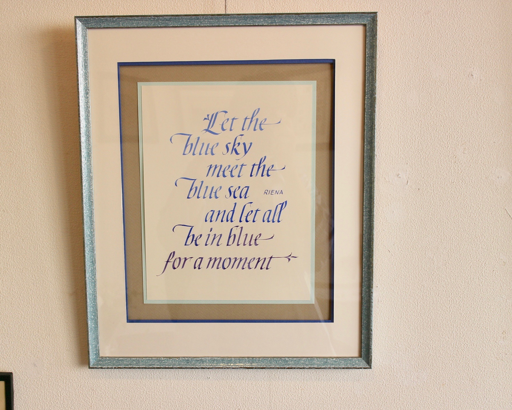 基本技法の後は、額装をしてみたいものを事前にお持ちいただき、教室内で一緒に色彩、デザイン、使用する紙などを適切に指導します。